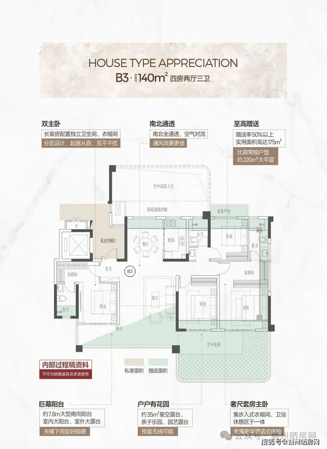 共享会客堂的设置,更为业从搭建了社交平台,便于结识同小区志趣相投的邻人,丰硕社区糊口空气,实正实现“不出小区,满脚日常所需”。云境大不雅延续了室第的焦点劣势,实现户户配备大花圃,适用面积远超市场预期,让业从花通俗大平层的钱,住上带院子的房子。目前,项目发布了两款从力户型,别离为建建面积约126㎡四房取140㎡四房,精准笼盖分歧人群的栖身需求,兼顾性价比取质量感。采用一梯一户入户设想,约11㎡的电梯厅私人利用,既保障了入户私密性,又多了一处适用的收纳取过渡空间。款式上南北通透、四开间朝南,实现了全明采光,搭配约7。7m 的巨幕南朝阳台和约 32㎡的星空天台,既能满脚日常晾晒需求,又能打制专属天井感的休闲角落;四房设置装备摆设脚够支持三代同堂或二孩家庭的日常栖身需求,全体正在节制总价的前提下,最大化拓展了糊口标准。