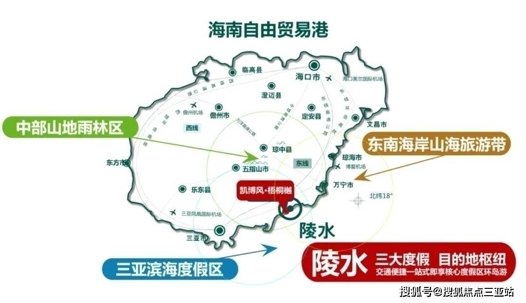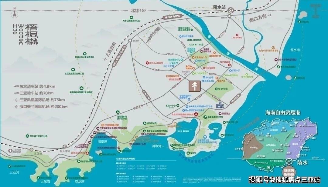 ,交通配套:海陆空全维立体交通,距陵水动车坐约4。8公里,距离三亚凤凰机场约75公里。大三亚区域,北纬18°以南;半小时度假圈,坐拥三湾四岛一港一园;近享清水湾、海棠湾、喷鼻水湾客居度假配套。