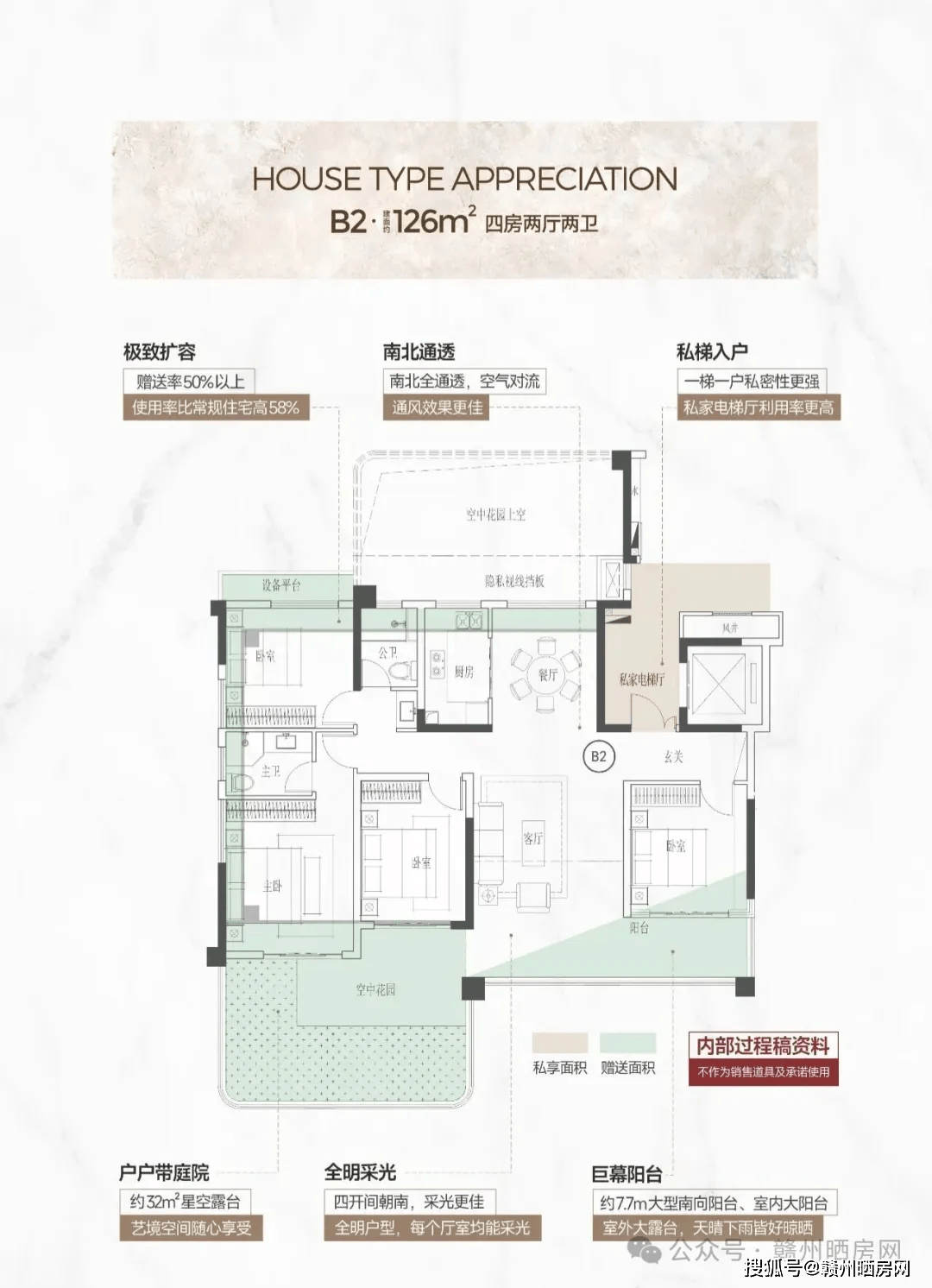 共享会客堂的设置,更为业从搭建了社交平台,便于结识同小区志趣相投的邻人,丰硕社区糊口空气,实正实现“不出小区,满脚日常所需”。云境大不雅延续了室第的焦点劣势,实现户户配备大花圃,适用面积远超市场预期,让业从花通俗大平层的钱,住上带院子的房子。目前,项目发布了两款从力户型,别离为建建面积约126㎡四房取140㎡四房,精准笼盖分歧人群的栖身需求,兼顾性价比取质量感。采用一梯一户入户设想,约11㎡的电梯厅私人利用,既保障了入户私密性,又多了一处适用的收纳取过渡空间。款式上南北通透、四开间朝南,实现了全明采光,搭配约7。7m 的巨幕南朝阳台和约 32㎡的星空天台,既能满脚日常晾晒需求,又能打制专属天井感的休闲角落;四房设置装备摆设脚够支持三代同堂或二孩家庭的日常栖身需求,全体正在节制总价的前提下,最大化拓展了糊口标准。